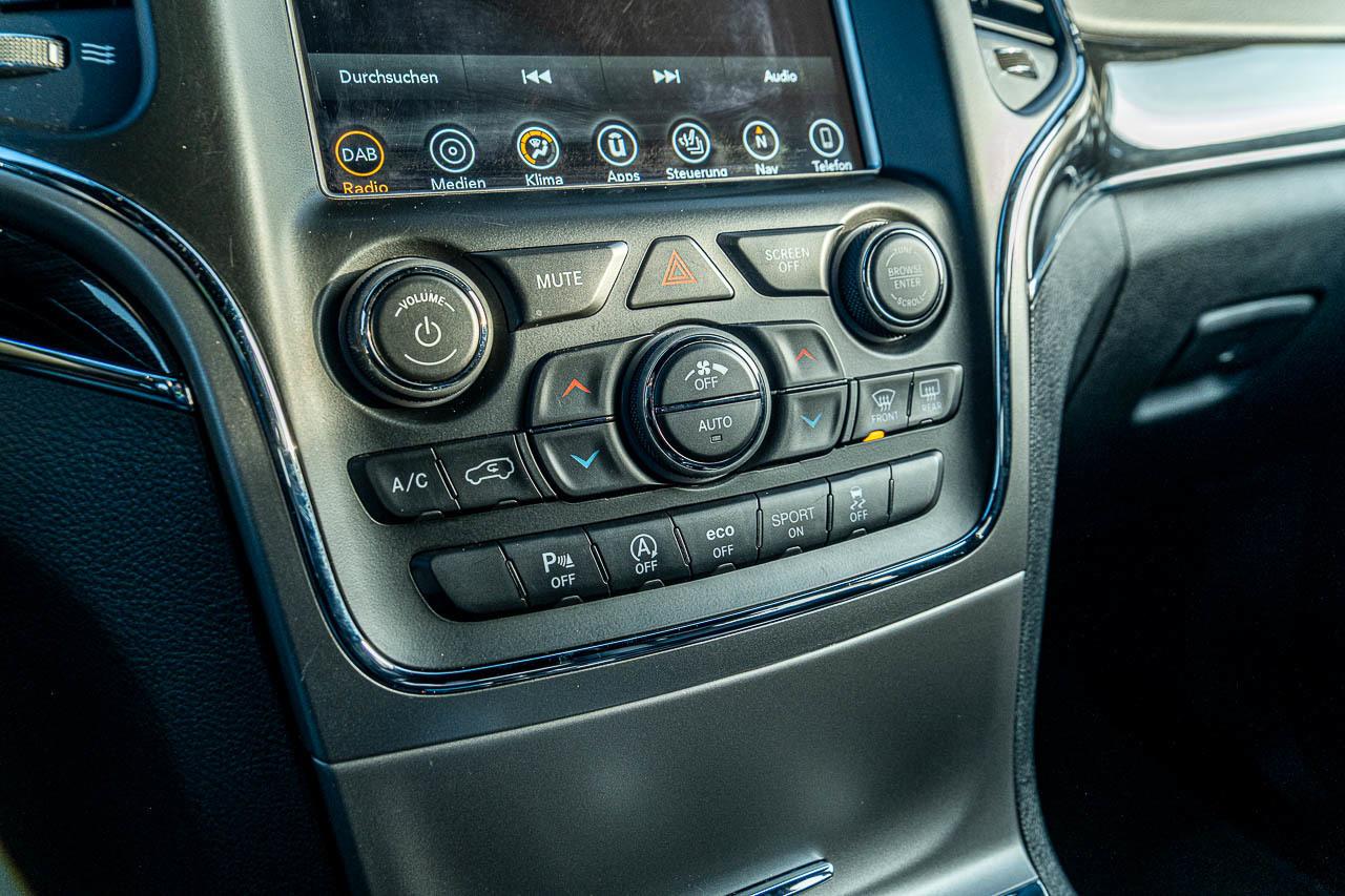 LM-Felgen, elektr. Stabilitätsprogramm (ESP), ABS, Wegfahrsperre, Navigationssystem, Zentralverriegelung, Elektr. Fensterheber, Servolenkung, Tempomat, Xenon-Scheinwerfer, Sitzheizung, Außenspiegel elektr., Bluetooth Freisprecheinrichtung, Bordcomputer, Elektrische Sitze, Freisprecheinrichtung, Multifunktionslenkrad, Radio/Tuner, Sportsitze, ISOFIX, Lichtautomatik, Nebelscheinwerfer, Tagfahrlicht, Traktionskontrolle, Regensensor, Dachreling, Einparkhilfe (PDC) Sensoren vorne, Einparkhilfe (PDC) Sensoren hinten, Scheinwerferreinigungsanlage, Fernlichtassistent, Sitzheizung Fondsitze, Android Auto, Apple CarPlay, Reserverad, Licht – Bi-Xenon, Alarmanlage, Spiegel automatisch abblendbar, Notbremsassistent, Belüftete Vordersitze, Belüfteter Sitz in Fond, Berganfahrhilfe, LED-Tagfahrlicht, Lederlenkrad, Lordosenstütze, Luftfederung, Reifendruckkontrolle, Soundsystem, Touchscreen, USB Anschluss, Schlüssellose Zentralverriegelung, Klimaautomatik 2 Zonen, Zentralverriegelung mit Fernbedienung, Fahrerairbag, Beifahrerairbag, Multimediasystem, Außenspiegel abklappbar, Elektronisches Traktions-System, Elektr. Fensterheber vorne/hinten, Gepäckraumabdeckung, Klimaautomatik, Klimaanlage, Knieairbag Fahrerseite, Rückfahrkamera, Rücksitzbank geteilt, Scheinwerferreinigung, keyless-Go, Seitenairbag, Stoßfänger in Wagenfarbe, Interne Fahrzeugnr.: G0025722, Airbag Fahrer-/Beifahrerseite, Aktive Kopfstützen, Anhänger-Stabilisierungs-Programm, Anti-Blockier-System (ABS), Antriebsart: Quadra-Drive II (Allrad), Antriebs-Schlupfregelung (ASR), Anzeige für Reifendruck im Display, Audiobedienung am Lenkrad, Audio-Navigationssystem: UConnect Smartouch Multimedia-System mit Navigationssystem, Außenspiegel elektr. anklappbar, Außenspiegel elektr. verstell- und heizbar, beide, Außenspiegel mit Abblendautomatik, Außenspiegel Wagenfarbe, Automatische Fahrlichtschaltung / Lichtsensor, Bi-Xenon-Scheinwerfer, Bremsassistent, Dachreling verchromt, Einstiegsleisten (verchromt), Elektron. Stabilitäts-Programm (ESP), Elektron. Traktionskontrolle, Fahrassistenz-System: Bergabfahr-Assistent, Fahrassistenz-System: Berganfahr-Assistent, Fahrassistenz-System: Fernlichtassistent, Fahrassistenz-System: Notbrems-Assistent, Fahrassistenz-System: Selec-Speed-Control (für Einsatz im Gelände-Modus), Fahrassistenz-System: Überschlag-Schutzsystem (ERM), Fensterheber elektrisch vorn + hinten, Freisprechanlage UConnect (mit Bluetooth-Schnittstelle), Gepäckraumabdeckung / Rollo, Geschwindigkeits-Regelanlage (Tempomat), Getriebe Automatik – (8-Stufen), Innenspiegel mit Abblendautomatik, Isofix-Aufnahmen für Kindersitz, Karosserie: 5-türig, Klimaautomatik 2-Zonen, Kopf-Airbag-System (Windowbag) vorn + hinten, Lendenwirbelstütze Sitz vorn links, Lendenwirbelstütze Sitz vorn rechts, Lenkrad (Leder), Lenksäule (Lenkrad) elektr. höhen-/längsverstellbar, LM-Felgen 8×18 (5-Doppelspeichen, schwarz), Luftfederung (Quadra-Lift), Memoryfunktion – Außenspiegel, Sitz, Modellpflege (2), Motor 3, 0 Ltr. – 184 kW CRD KAT, Nebelschlussleuchte, Parkpilotsystem vorn und hinten, Radstand 2915 mm, Reifendruck-Kontrollsystem, Reserverad in Fahrbereifung, Rücksitz geteilt / klappbar, Rußpartikelfilter, Schadstoffarm nach Abgasnorm Euro 6, Schalt-/Wählhebelgriff Leder, Scheibenwischer mit Regensensor, Scheinwerfer-Reinigungsanlage (SRA), Schließ-/Startsystem Keyless Go, Seitenschutzleisten Chromoptik, Sitz vorn links elektr. verstellbar, Sitz vorn rechts elektr. verstellbar, Sitzbelüftung vorn, Sitzbezug / Polsterung: Nappa / Velours-Leder, Sitzheizung hinten, Sitzheizung vorn, Smartphone Schnittstelle (Apple CarPlay & Android Auto), Sonnenblenden mit Spiegel (beleuchtet), Sound-System Alpine Premium, Stoßfänger Wagenfarbe, Tagfahrlicht LED, Türgriff außen verchromt, Uni-Lackierung, Unterfahrschutz, USB-Anschluss, Verglasung hinten abgedunkelt, Wärmeschutzverglasung (Dämmglas)
